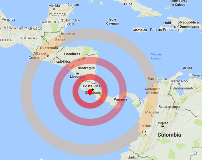 Fortissimo terremoto scuote il centro America: epicentro in COSTA RICA tra le citta’