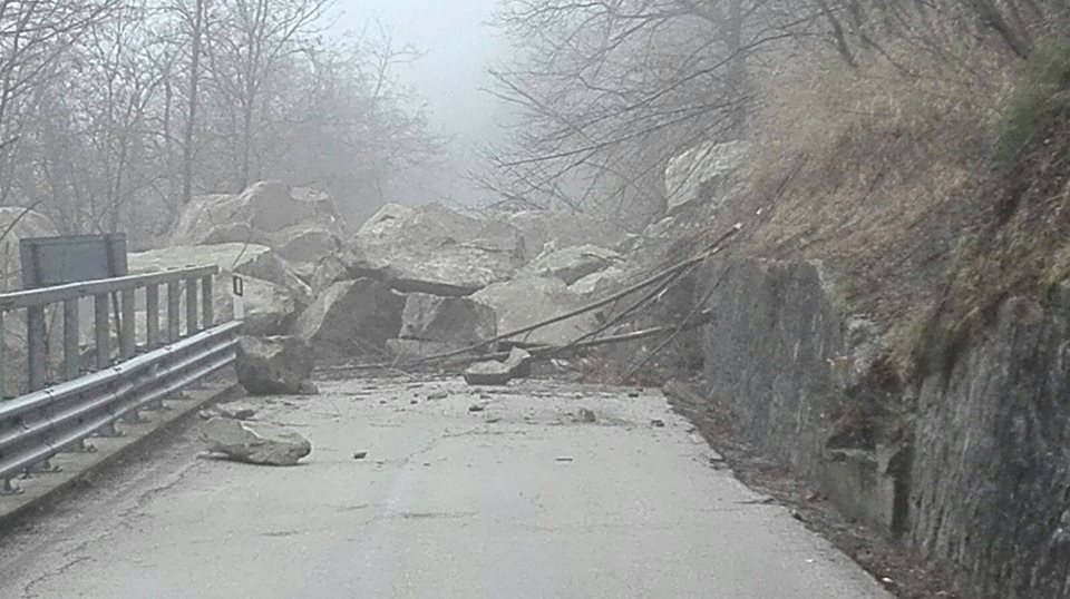 La frana, che ha praticamente sbarrato la strada provinciale con grossi massi, è avvenuta nel corso della nottata. L’area è molto pericolosa in quanto potrebbero rotolare altri massi di grandi dimensioni dalla collina. Sul posto si sono recati vigili del fuoco e polizia. Nella zona si sono verificate piogge abbondanti e nevicate nei giorni passati.