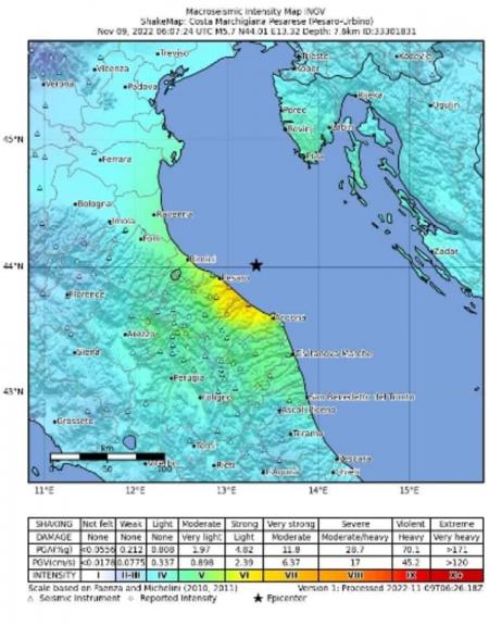 Una forte scossa di terremoto ha colpito l’Adriatico centro-settentrionale alle 7.07 di oggi 9 novembre 2022, precisamente a circa 30 km a largo della costa pesarese, nelle Marche.