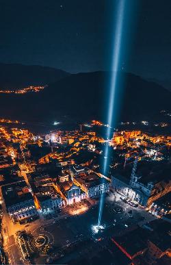 Il fascio di luce proiettato da piazza Duomo è stato reso possibile da Francesco Colantoni, Stefano Ianni, Flavia Massimo, Mauro Pagliai, Wolfango de Amicis e Agorà srl.