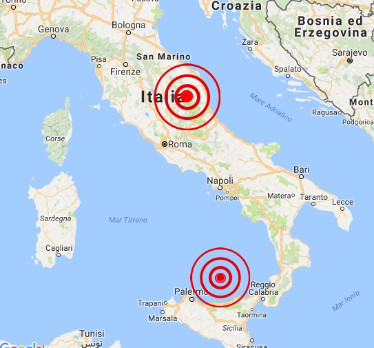Abbiamo mostrato un’immagine esplicativa con le due zone distinte, in cui si sono verificati i principali movimenti tellurici delle ultime ore: