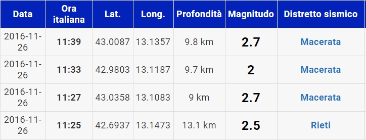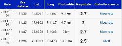 Analizzando l’ultima ora (11-12), sono 4 i movimenti tellurici registrati dai sismografi: uno in provincia di Rieti, gli altri 3 in provincia di Macerata. Tutti di entità lieve, con una magnitudo massima di 2.7 Richter.