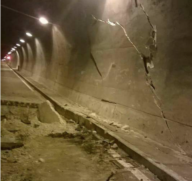 Terremoto centro Italia: impressionanti immagini di una galleria danneggiata