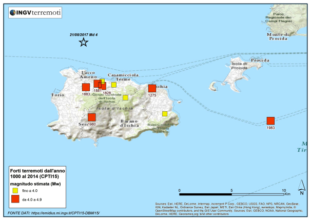 L’isola d’Ischia, la più grande delle Isole Partenopee che chiude a ovest il Golfo di Napoli, ha una sismicità storica ben conosciuta.