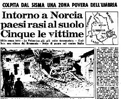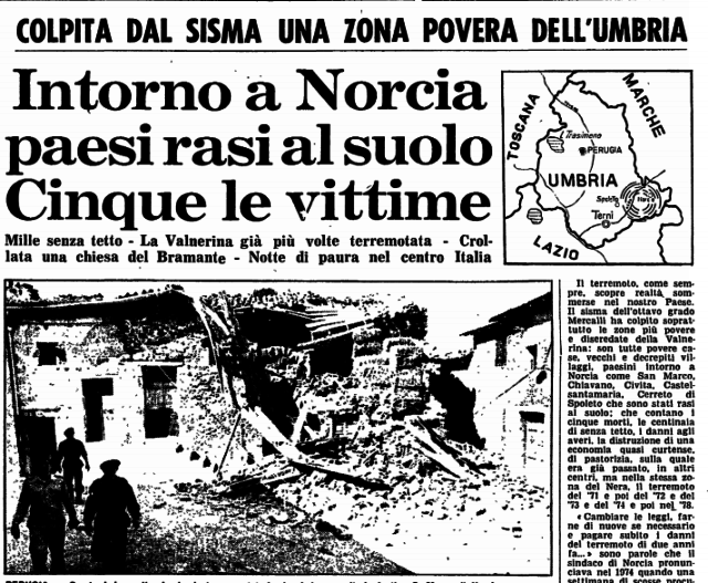 Terremoto Norcia 1979: il 19 Settembre la fortissima scossa che colpi’ il Centro Italia