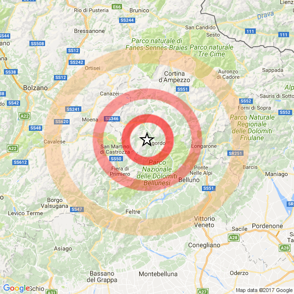 Dalle stime preliminari dell’INGV, si tratta di una scossa di magnitudo 3.6 Richter, quindi di entità moderata, avvenuta nel Veneto settentrionale, a 2 km dal comune bellunese di Voltago Agordino.