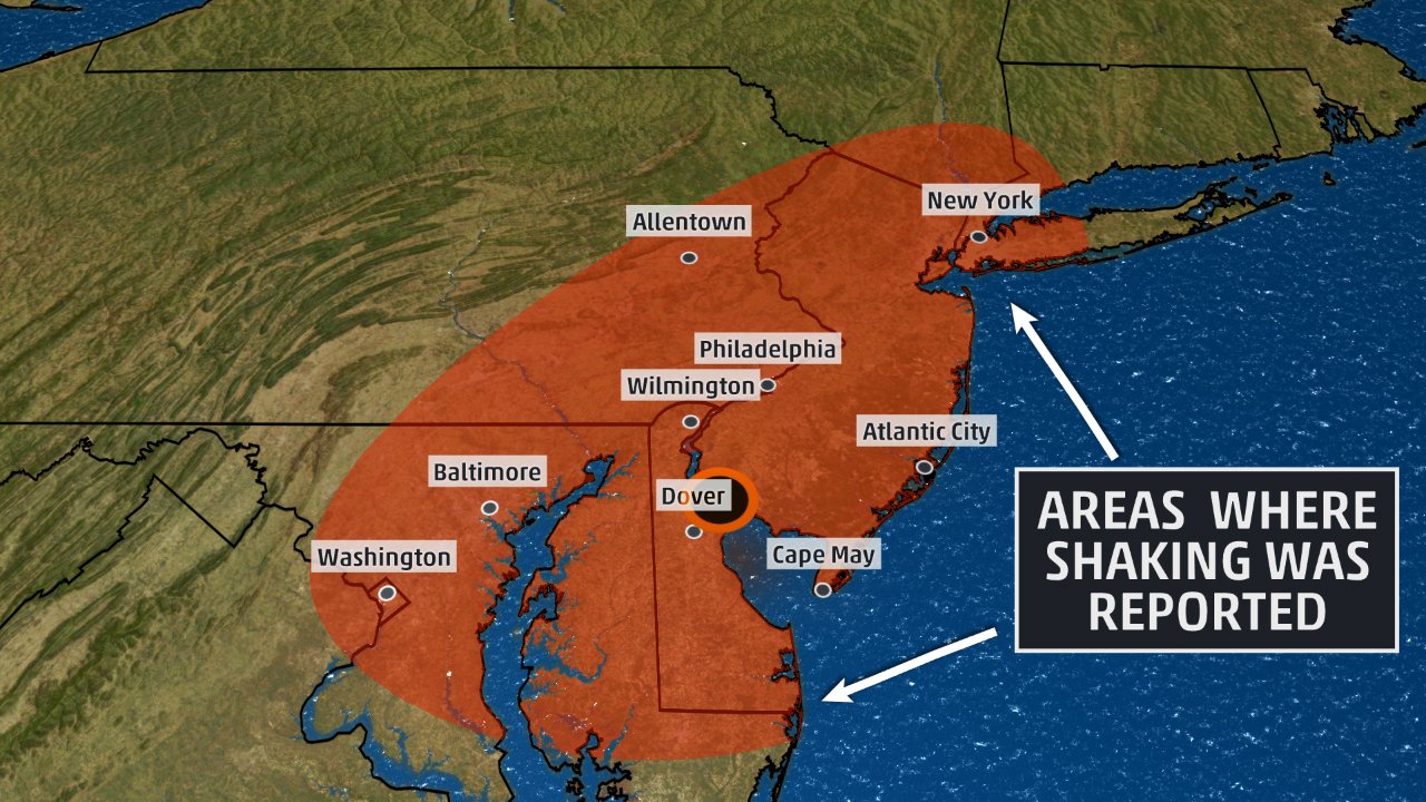 Secondo le rilevazioni dei sismografi, si è trattato di una scossa piuttosto intensa, magnitudo 4.9 sulla scala Richter, avente epicentro nello stato del Delaware, esattamente a 10 km dalla località costiera di Dover. La scossa, registrata alle 22,41 ora italiana (le 16,41 negli Usa) si è verificata a una profondità di circa 7 km.
