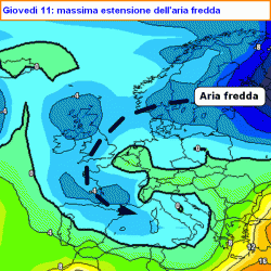 Un nucleo di aria molto fredda di recente origine artica perverrà sul cuore dell'Europa e interesserà con la sua coda periferica (ma non meno velenosa) anche l'Italia. Il modello inglese però rimane un po' scettico.