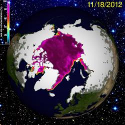 Ma noi non sogniamo, nè facciamo incubi, vogliamo solo prender visione dei numeri. E i numeri dicono che nelle ultime settimane le manovre sulle due calotte glaciali si sono (probabilmente solo temporaneamente) invertite. L’Artico, sotto i colpi della mannaia calorifica estiva, ha ceduto nel 2012 qualcosa come oltre 2 milioni e mezzo di chilometri quadrati di superficie.