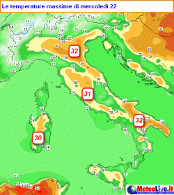 I settori più caldi saranno la bassa valle Padana, le zone interne e pianeggianti della Toscana, della Puglia e il Campidano in Sardegna. Qui i valori massimi del giorno potranno attestarsi intorno a 31-32 gradi.