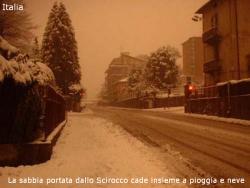 Sia ben chiaro non tutta la sabbia sollevata dalle bufere del deserto riesce ad attraversare in cielo mari e continenti ma solo i granelli di polvere di diametro inferiore a 0,001 millimetro. Sull’Italia il fenomeno è abbastanza noto ma forse pochi immaginano che le sabbie che ogni anno sorvolano il Mare Nostrum per ri-precipitare sulla nostra Penisola ammontano a circa 200 tonnellate. L’evento si manifesta nella sua veste più suggestiva in caso di nevicate.