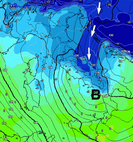 L'ultimissima emissione del modello americano prevede un brusco ingresso dell'aria fredda domenica sull'Italia a partire dal settentrione con neve dapprima in pianura su alcune regioni, poi lungo il medio e basso Adriatico sin sulle coste. E' attendibile?