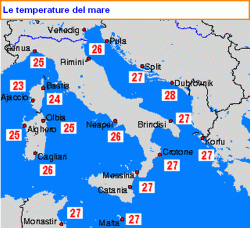 Qui l’azione intensiva dell’alta pressione nord-africana, che ha dominato incontrastata per diversi giorni, è risultata determinante nel manipolare le temperature superficiali. Chi si immerge ora da Pescara a Lecce, da Taranto a Reggio Calabria e da Messina a Trapani, trova acque miti, la cui temperatura oscilla mediamente sui 27 gradi.