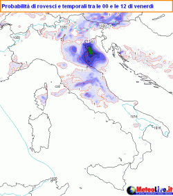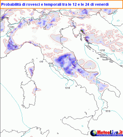 Al mattino rovesci sono attesi su Triveneto e Romagna, in estensione e ulteriore sviluppo verso Marche, Abruzzo ed Umbria, dove si avranno anche diversi focolai temporaleschi, anche forti. Nel corso del pomeriggio i rovesci, sebbene a carattere sparso e intermittente, tenderanno ad riguadagare terreno verso il nord-ovest, interessando soprattutto la fascia prealpina lombarda, ma anche le Alpi Marittime, il Levante ligure e l’Emilia orientale.