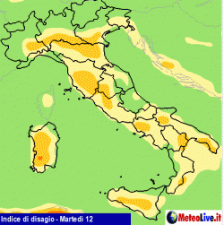 A questo punto ci chiediamo: ma quando arriverà il caldo vero, come ci comporteremo? Abbiamo parlato di caldo vero, quello fastidioso e che può provocare anche problemi alla salute. Ebbene scrutando le mappe del disagio fisico notiamo che la giornata di martedì sarà la peggiore della settimana, intesa a livello italiano, una giornata di caldo vero, anche se non da record.