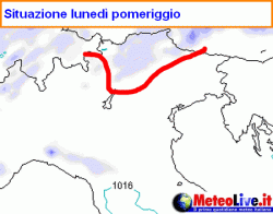 L'Italia quasi tutta con il bel tempo tranne i settori di confine dell'alta Lombardia e l'Alto Adige.