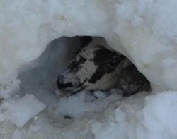 Ancora una bufera di neve protagonista della scena; un gregge di pecore sorpreso da queste condizioni climatiche cui certamente non è abituato, non riesce a trovare riparo. Molti capi muoiono e vengono sepolti da una spessa coltre di neve. Anche Dolly (il nome naturalmente è di fantasia), sfinita, cedette, si accasciò a terra e la neve iniziò rapidamente a ricoprirla.