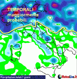 Le precipitazioni dei prossimi sette giorni: si colora soprattutto il NORD