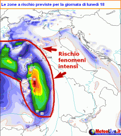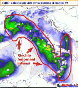 Frattanto una situazione delicata si andrà instaurando anche sulla Sardegna. Piogge forti dapprima sui settori costieri orientali, poi passaggio temporalesco su tutta l’Isola nel corso del pomeriggio. Rischio di locali nubifragi sulle province di Olbia e in Ogliastra.