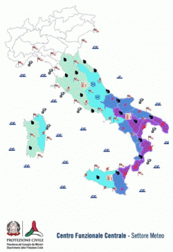 Dal pomeriggio infine, si prevedono precipitazioni da sparse a diffuse anche a carattere di rovescio o temporale sulla Sardegna, specie sulle zone orientali. I fenomeni daranno luogo a rovesci di forte intensità, frequente attività elettrica e forti raffiche di vento. Quota neve in progressivo rialzo sopra i 1200 metri sull’Appennino umbro-marchigiano, abruzzese e laziale, in ulteriore ascesa sopra dei 1800 metri sugli altri settori, con accumulo al suolo fino elevato sul versante adriatico, specie quello abruzzese.
