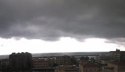 Il cielo nero sopra la cittadina di Chiavari. Il Golfo del Tigullio, sulla riviera di levante, ha vissuto una mattinata intensa dal punto di vista meteo.