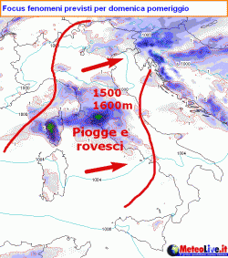 Le quote neve: al mattino 1500 metri sulle Alpi orientali, dal pomeriggio 1400-1500 metri sull’Appennino settentrionale, 1600 metri su quello centrale, 1700 metri su quello meridionale.
