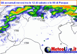 La fase di tempo instabile che precede e in parte comprende anche le festività pasquali sarà appena sufficiente per dare una mano di bianco alle nostre montagne. Il limite medio delle nevicate si spiongerà fin verso i 1500-1600 metri, fino a calare verso gli 800-1000 metri nella giornata di Pasqua, quando comunque le precipitazioni risulteranno più probabili e frequenti lungo la linea ci confine.