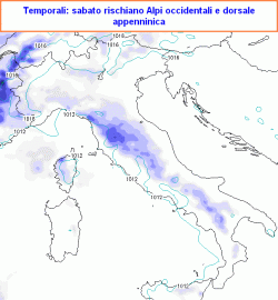 Sabato possibili acquazzoni su Alpi occidentali e dorsale appenninica
