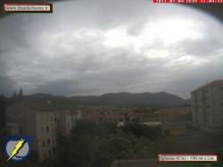 Sulla Sardegna il cielo si presenta coperto su molti settori. Qui siamo ad Iglesias, nel sud ovest dell’Isola.