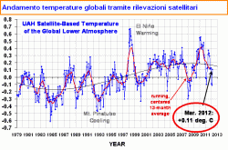 Nel 2010 ad esempio sembrava che il calo partito del 2008, per altro disatteso dai modelli climatici che invece avevano preventivato una salita esponenziale e continuata, fosse un episodio a sè stante. Nel 2011 però ecco che le temperature della bassa troposfera, ovvero quelle che dal suolo arrivano fino a 3000 metri di quota, si sono nuovamente stabilizzate, salvo tornare a scendere a gennaio.