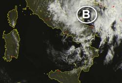 Dopo aver spruzzato le Alpi nella giornata di domenica, una mano di bianco anche all’Appennino quest’oggi, lunedì 16, ci stava proprio. Il ricciolo nuvoloso che si porta dietro l’aria fredda (vedi l’immagine satellitare nella seconda figura) sta scivolando ora lungo l’Adriatico.