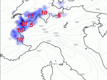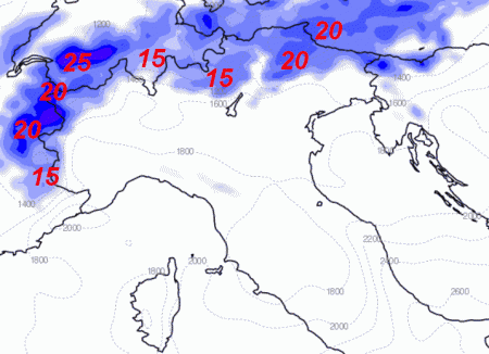 Sui settori confinali della Val d’Aosta, sulla Savoia e le Alpi Svizzere sono attesi tra i 40 ed i 45cm di neve nell’intera giornata festiva.