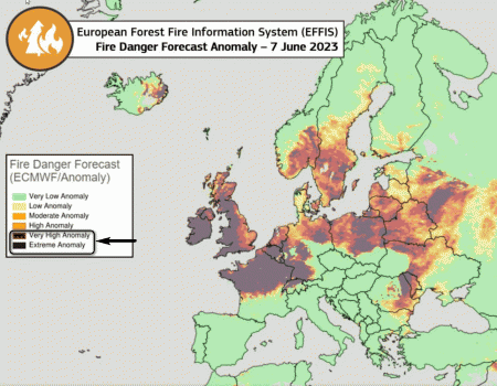 Rischio incendi massimo nelle aree in cui la pioggia dovrebbe farla da padrona in questo periodo, ovvero sul centro-nord francese, le Isole Britanniche, l’Olanda, il Belgio, il nord della Germania e addirittura parte della Scandinavia e del Baltico.