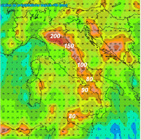 Spiccano i 200mm sull’Emilia Romagna, attesi nei prossimi due giorni. Piogge di un certo peso saranno presenti anche sulla Sicilia occidentale, la Campania, l’Abruzzo e le Marche. Sul resto d’Italia piogge decisamente più contenute.