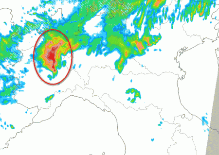 Di seguito, la posizione delle precipitazioni previste sul nord Italia attorno alle ore 20 di questa sera (MERCOLEDI 24 MAGGIO)