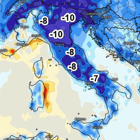 Fino a 10° sottomedia si avranno al nord-est, 8° sottomedia nelle aree interne del centro e 7° sottomedia nelle aree interne del meridione.