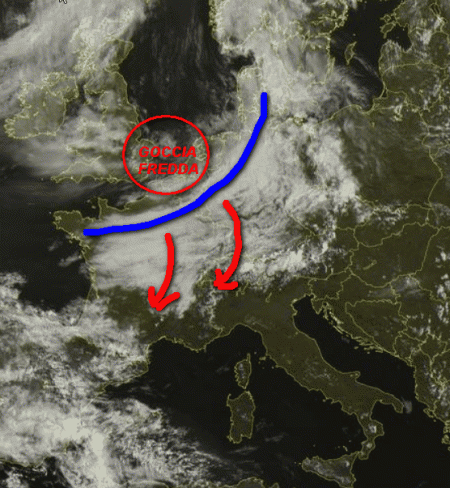 In attesa dei temporali pomeridiani, il tempo sull’Italia si presenta nel complesso buono. Da nord è in arrivo però una goccia fredda che tra domani (mercoledi) e giovedi determinerà un’accentuazione dell’attività temporalesca segnatamente al nord, con temporali che potrebbero essere anche di forte intensità.