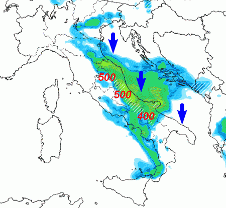 Avremo il culmine di questa parentesi più fredda che interesserà l’Italia all’inizio della settimana prossima. Alcune nevicate potrebbero verificarsi sopra i 400-500 metri su Marche, Abruzzo, Molise e Puglia Garganica.