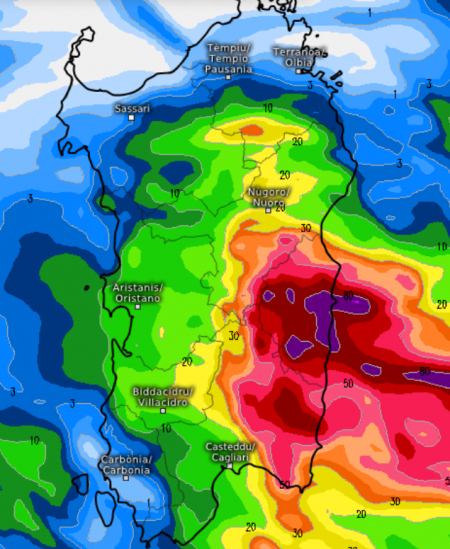 Ti segnaliamo: piogge molto abbondanti in arrivo su est Sardegna