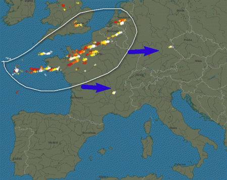 In netto anticipo sulla tabella di marcia stagionale, alcuni temporali stanno interessando il nord della Francia e persino l’Inghilterra (questa è l’anomalia più grossa).