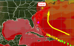 I problemi causati da Irene però potrebbero non limitarsi all’oceano: tra sabato 27 e domenica 28 il ciclone punterà la costa orientale degli Stati Uniti tentando il landfall tra il North Carolina e la Virginia. Anche Washington e New York potrebbero venire investite dal vortice ancora in pieno stato di salute.