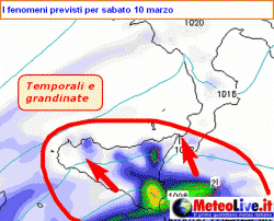 Piogge abbondanti, temporali, locali grandinate e vento forte saranno gli ingredienti della giornata prefestiva sull'isola ma anche sulla bassa Calabria.