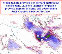 Le previsioni per le prossime 24 ore purtroppo non sono così ottimistiche per il medio-basso adriatico. Dopo quasi 5 giorni di continuo trottolare nel Mediterraneo, il cut-off pare ormai andare in fase di definitivo colmamento. Gli ultimi respiri della depressione mediterranea avranno però la forza di regalare una ulteriore passata temporalesca prevista domani nuovamente tra Marche e Puglia.