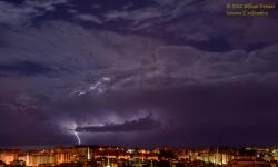 Alcune intense celle temporalesche si sono formate sul mar Ligure tra la notte e la mattina di domenica 2 settembre. Spettacolari fulminazioni squarciano i cumulonembi illuminati anche dalla luna.