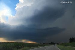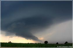Le quattro fotografie qui mostrate immortalano la supercella da varie angolazioni riprese da diversi autori. In tutte le fotografie spicca la forma rotondeggiante alla base del temporale, diverse bande spiraleggianti che si avvolgono nelle pareti del cumulonembo testimoniando la rotazione di questa incredibile cella temporalesca!