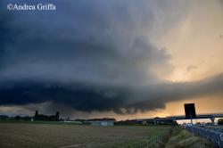 In caso di wind-shear positivo le supercelle che si producono dalla dry line in discesa dall’Appennino possono essere incredibilmente spettacolari! La forma striata e arrotolata del mesociclone infatti, viene resa più evidente dalle intrusioni di aria secca che anche a media quota "consumano" il cumulonembo e lo scolpiscono.