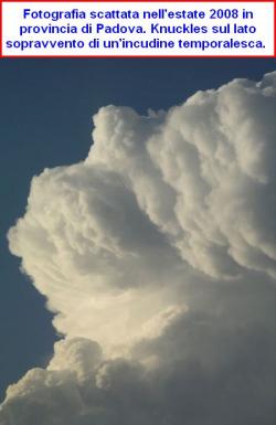 La sua forza propulsiva resta elevata, l’updraft non potendo proseguire la sua corsa verso l’alto si espande quindi in modo turbolento orizzontalmente. Si può dire quindi che i knuckles siano l’espressione diretta di un updraft ancora molto giovane e vigoroso, quasi sempre spia di un temporale intenso e ancora molto attivo.