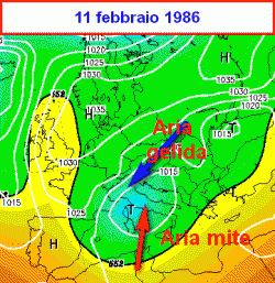 11 febbraio 1986: l’Italia viene interessata da una forte ondata di gelo. Ecco la cartina di quella memorabile giornata.