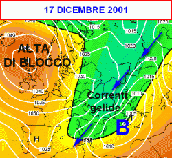 Guardate l’alta pressione di blocco che si erge maestosa sul Regno Unito. Sul suo fianco orientale, in questi casi, si mette sempre in moto una massiccia irruzione fredda dai quadranti nord-orientali, che va a colpire frontalmente le regioni del medio e basso Adriatico.