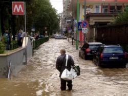 Simpatico siparietto tra condomini per evitare l'allagamento delle cantine dopo l'ennesimo straripamento del Seveso in zona Niguarda a Milano.